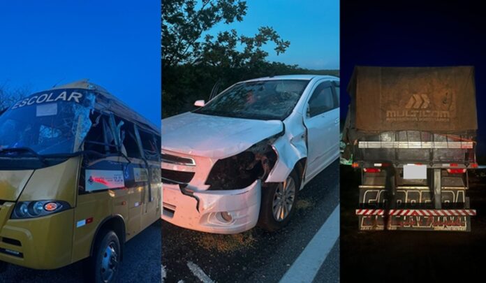 De acordo com informações oficiais repassadas pelo major Jardel, do Corpo de Bombeiros de Pombal, o acidente envolveu três veículos: uma carreta bitrem, um ônibus escolar e um carro de passeio.
