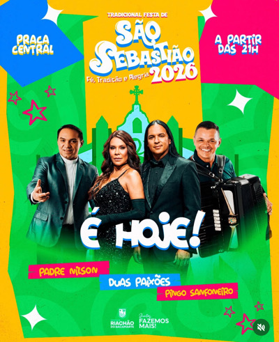 Riachão do Bacamarte dá início nesta sexta-feira, 23 de janeiro, ao primeiro dia da tradicional Festa de São Sebastião 2026. A programação começa a partir das 21h, na Praça Central, reunindo moradores e visitantes em uma noite marcada por fé, cultura e muita animação.
